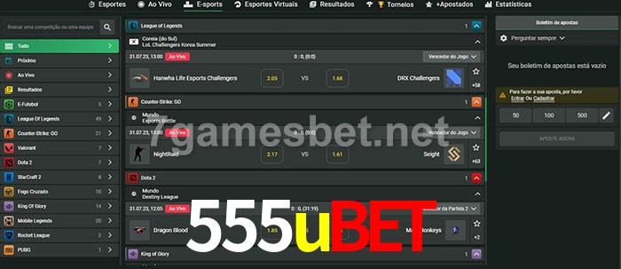 O 555ubet oferece uma grande seleção de opções de apostas em e-sports com probabilidades competitivas